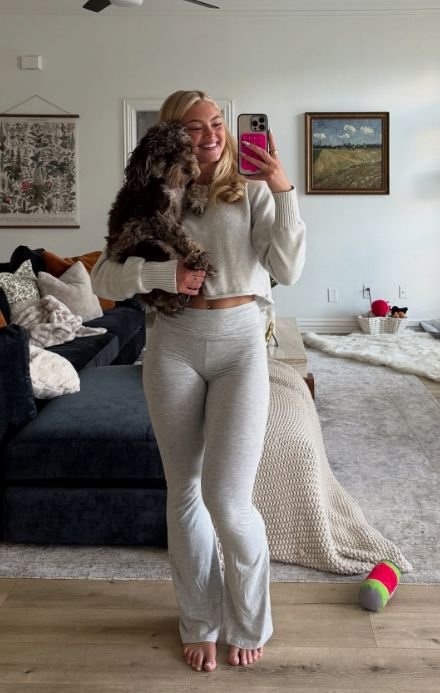 When it comes to cute lazy day outfits, the magic is in mixing basics with something a little elevated. For example, an oversized crewneck sweatshirt paired with ribbed leggings instantly feels put-together. Toss in fuzzy socks or slides, and suddenly it’s not just a “throw-on” look—it’s an aesthetic.